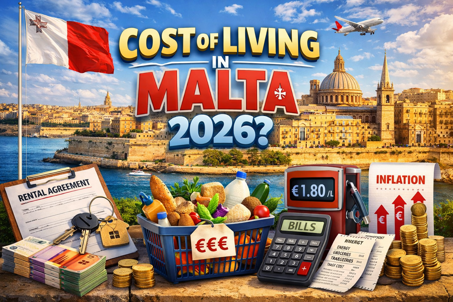 A single professional renting a one-bedroom apartment in Malta spends €1,400–1,900 per month in 2026. A couple sharing a two-bedroom should budget €2,200–2,800. These figures come from lived experience, not Numbeo averages — and they include €200–400 in recurring costs that most published guides leave out entirely.